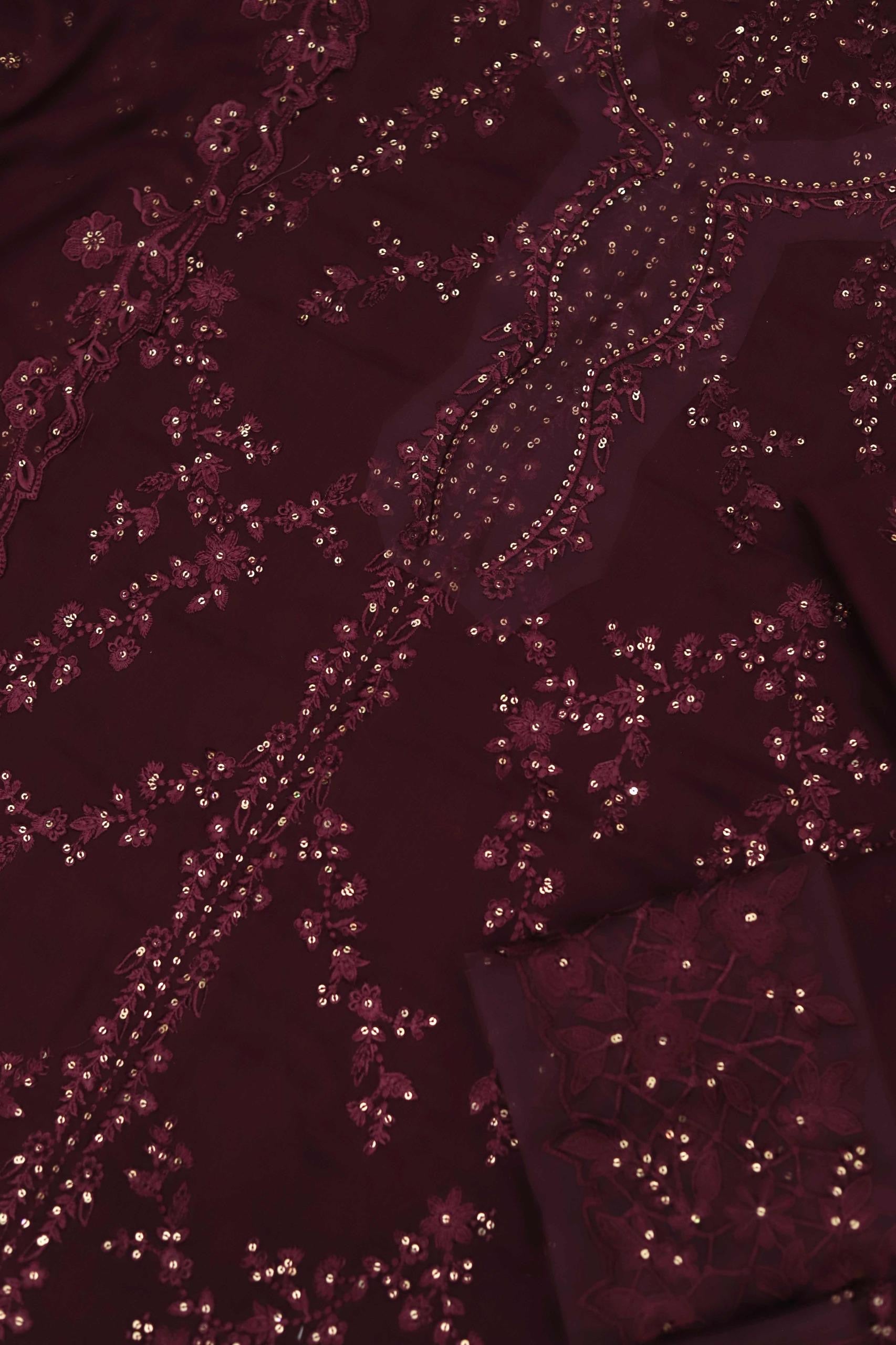 Embroidered Sequinned Chiffon Front, Back And Sleeves