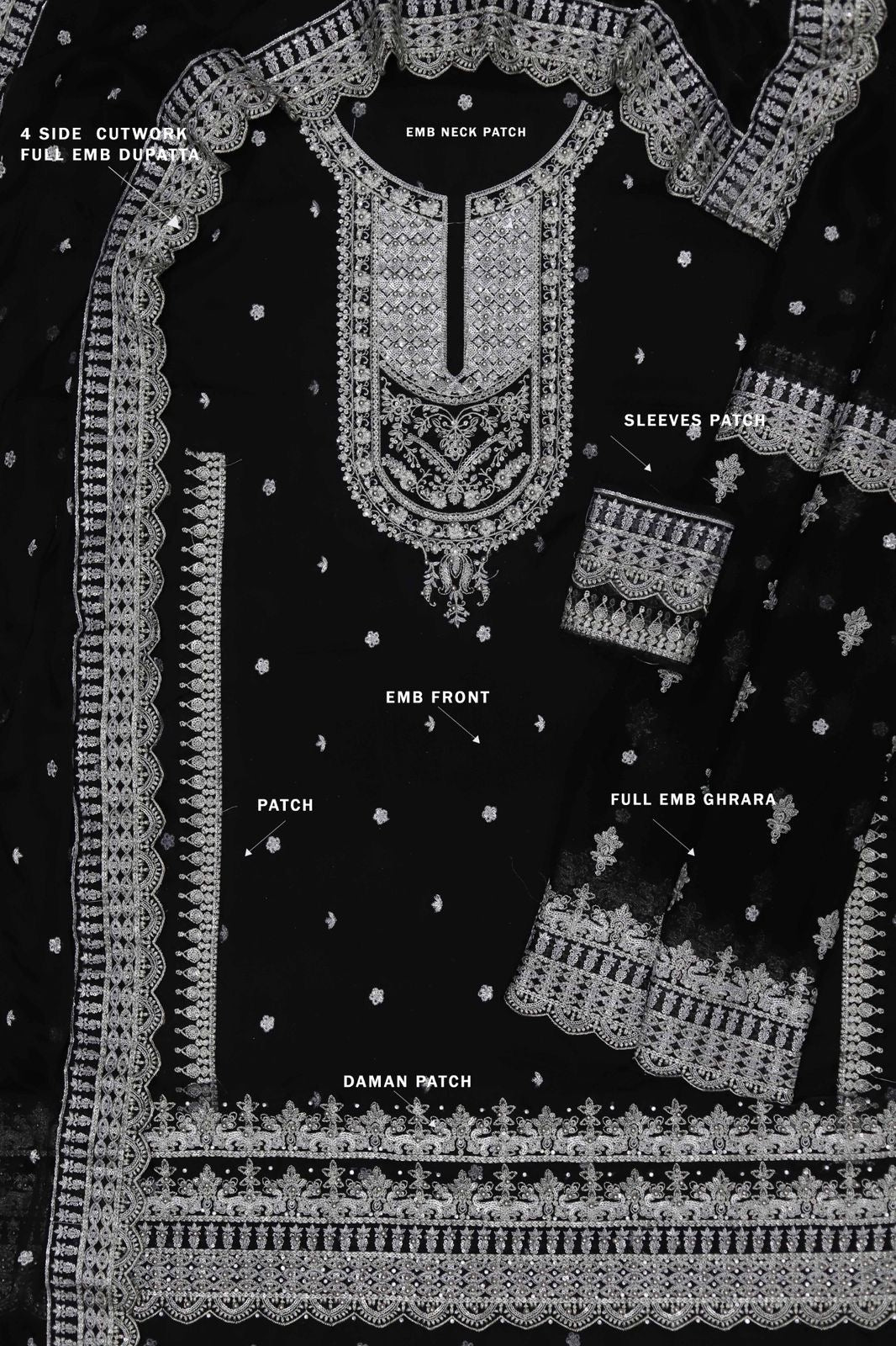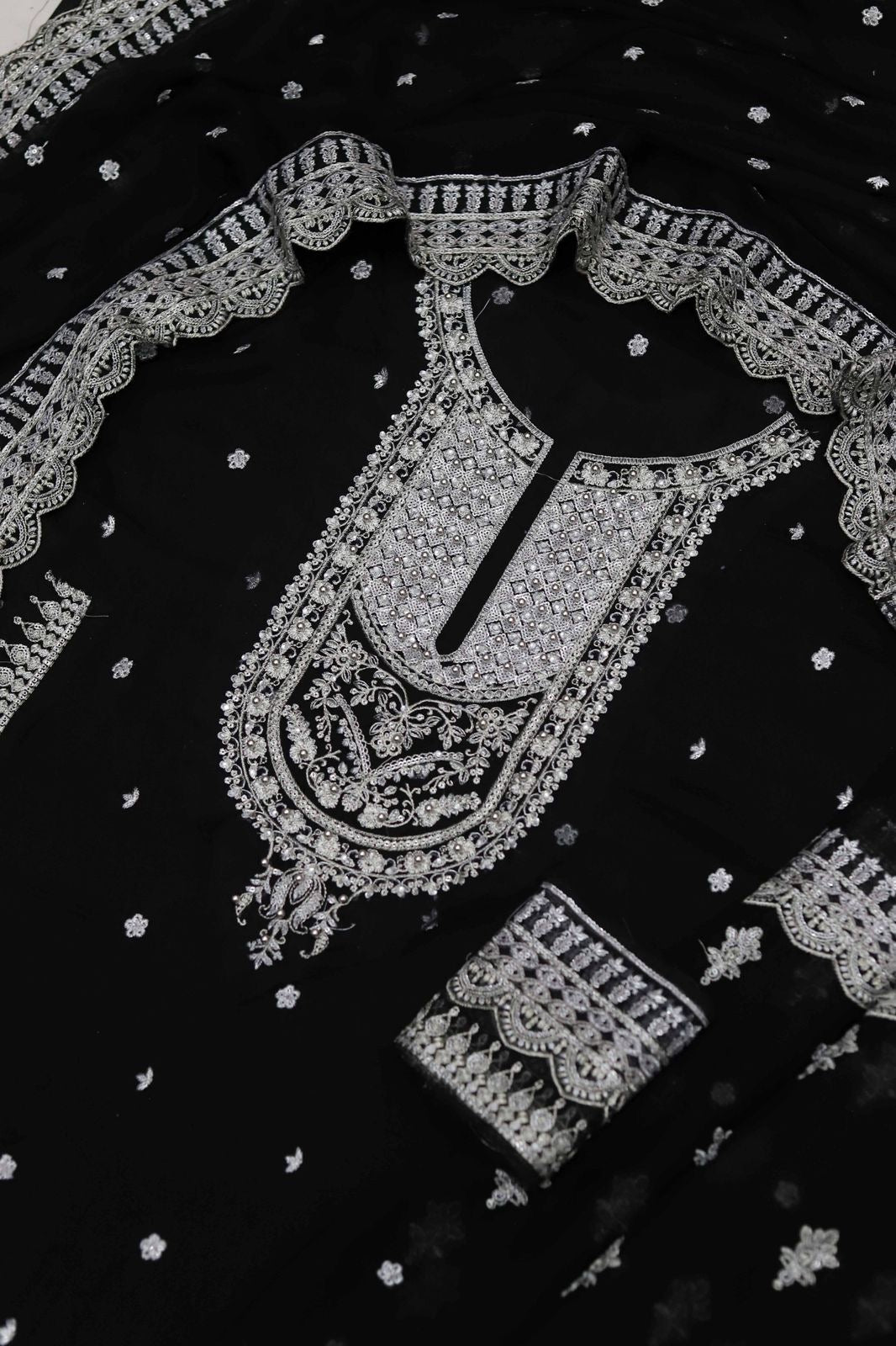 - Embroidered Sequinned Chiffon Front, Back And Sleeves