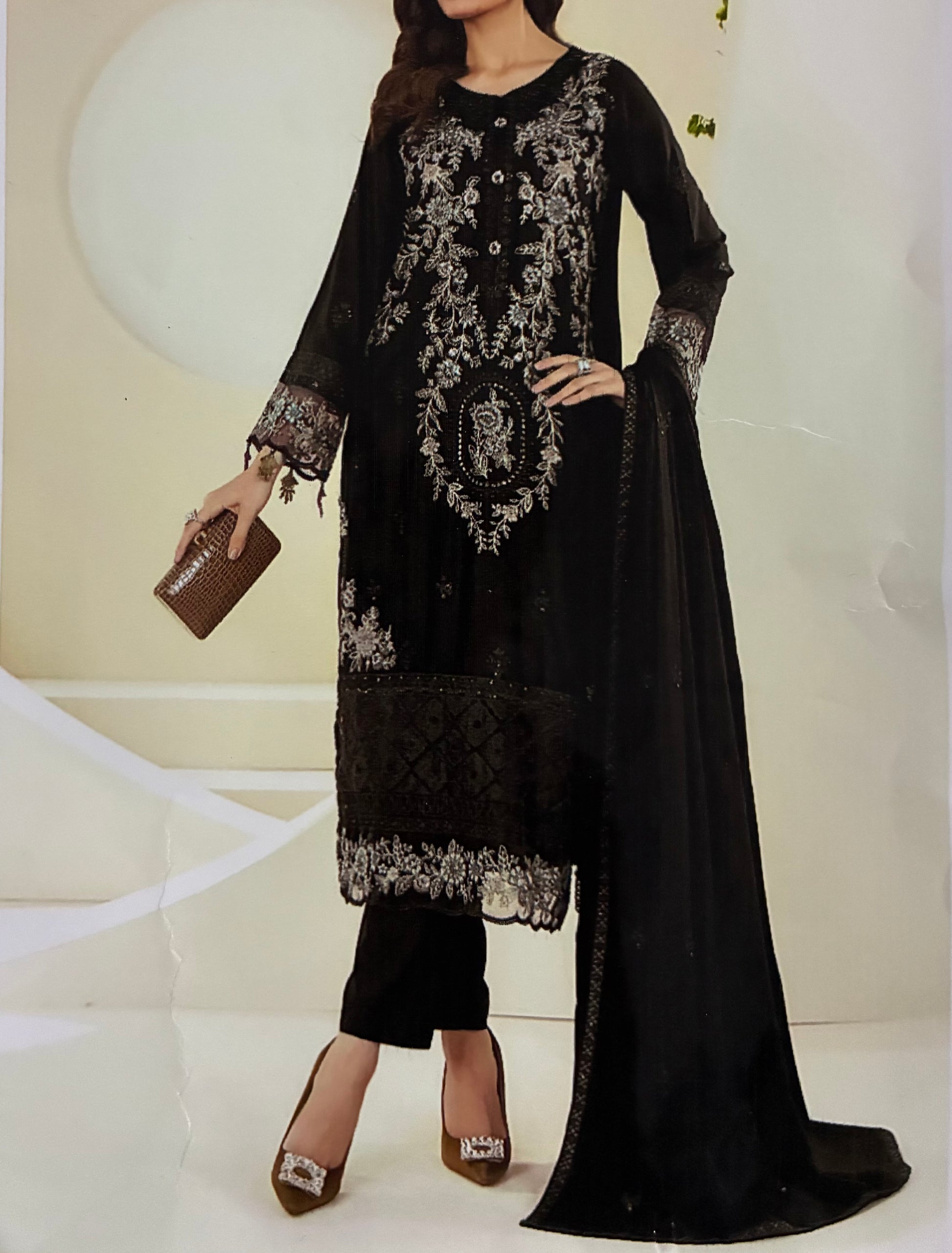 - Embroidered Dhanak Front, Back And Sleeves