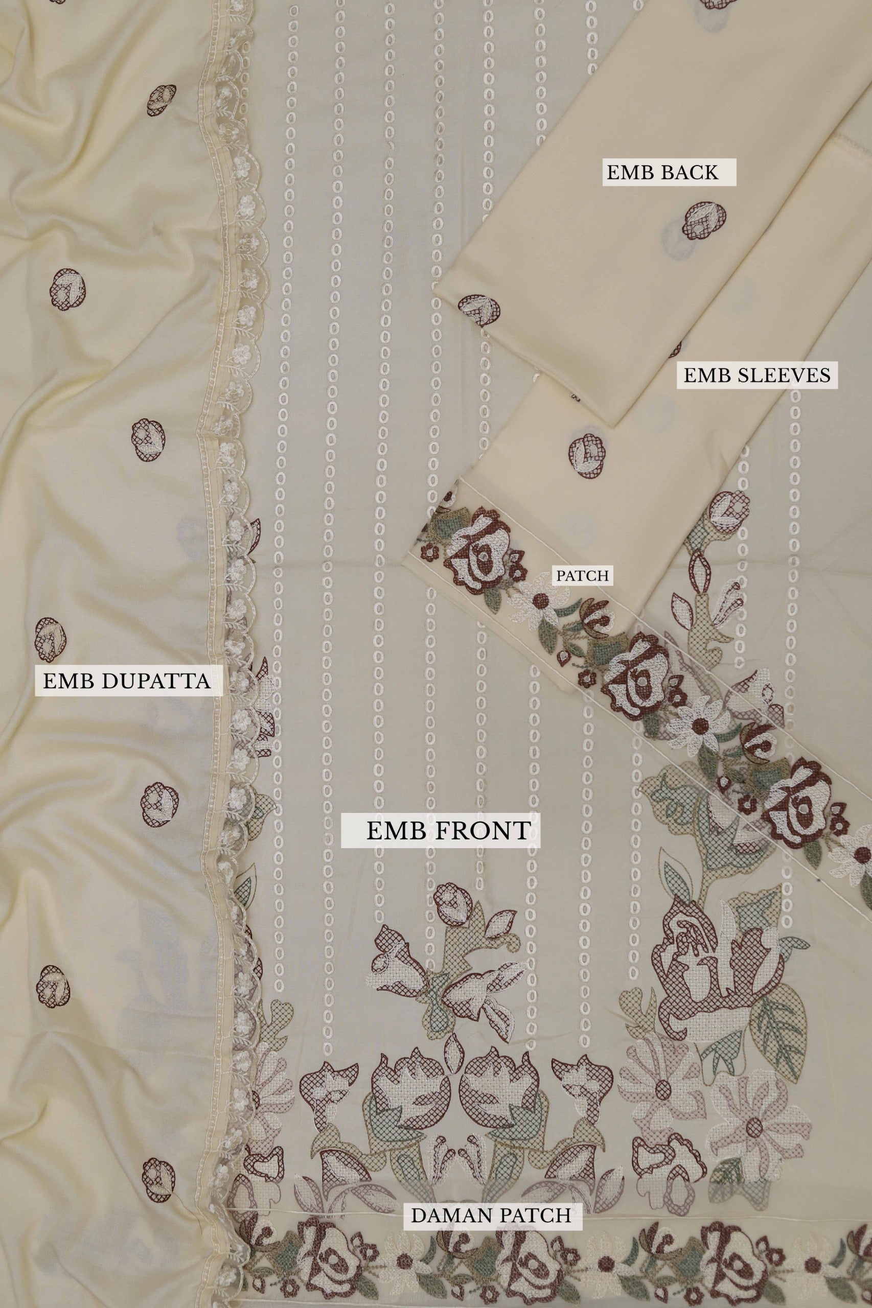 Unstitched Embroidered Dhanak 3PC | WC-040B