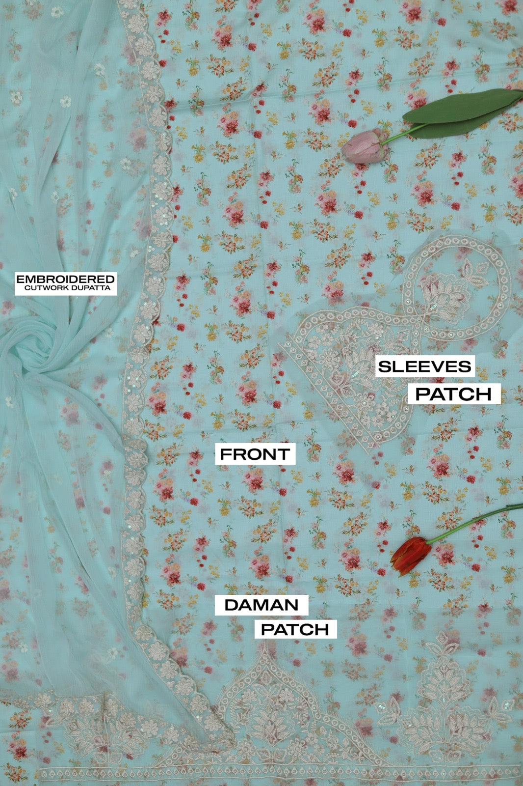 - Ready-to-wear chiffon embroidered dupatta with 4-side lace patti