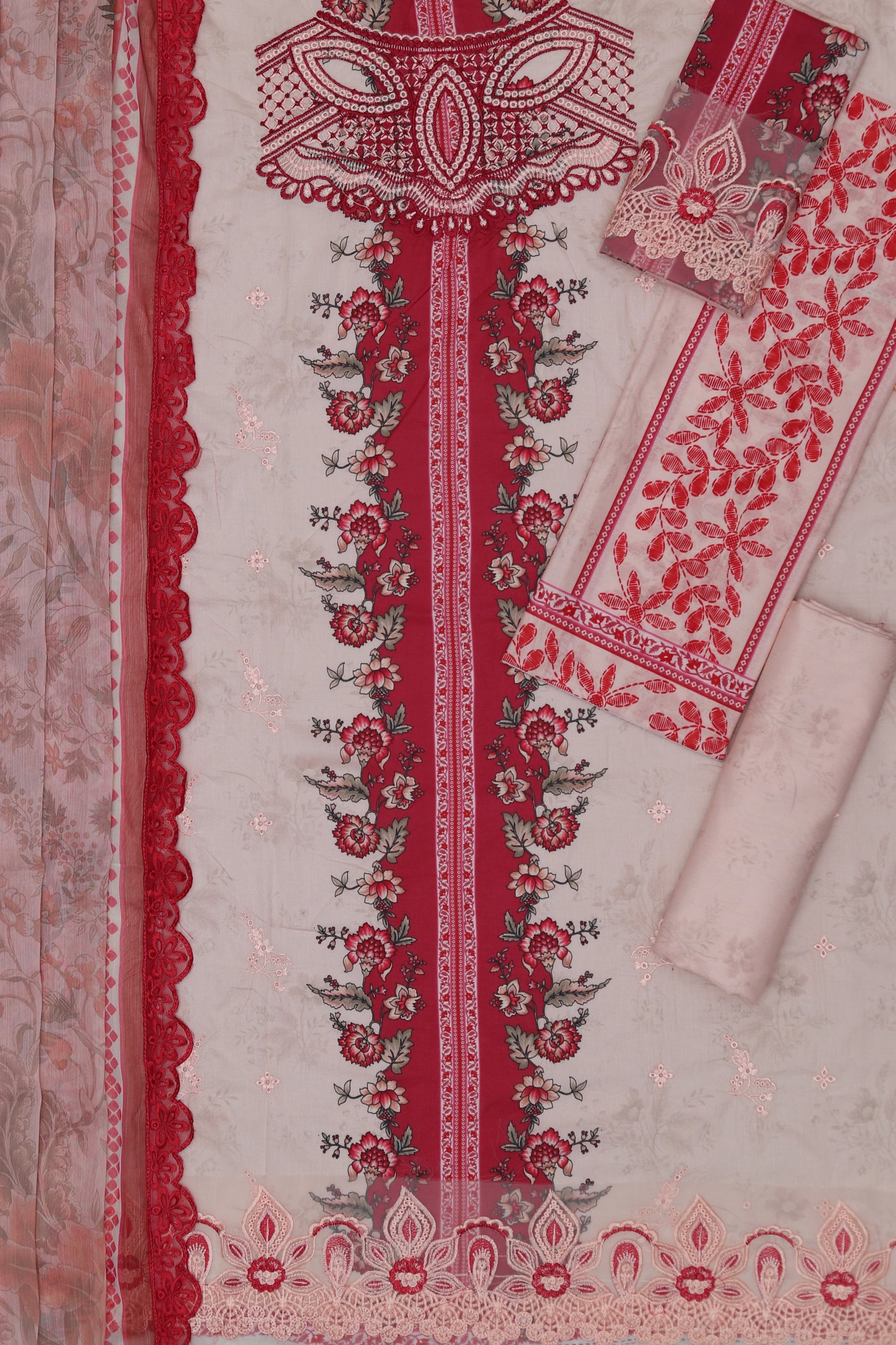 - 4-side embroidered printed chiffon dupatta