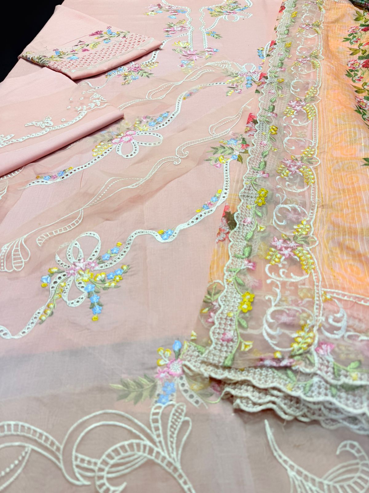 - Embroidered daman, border & front patches