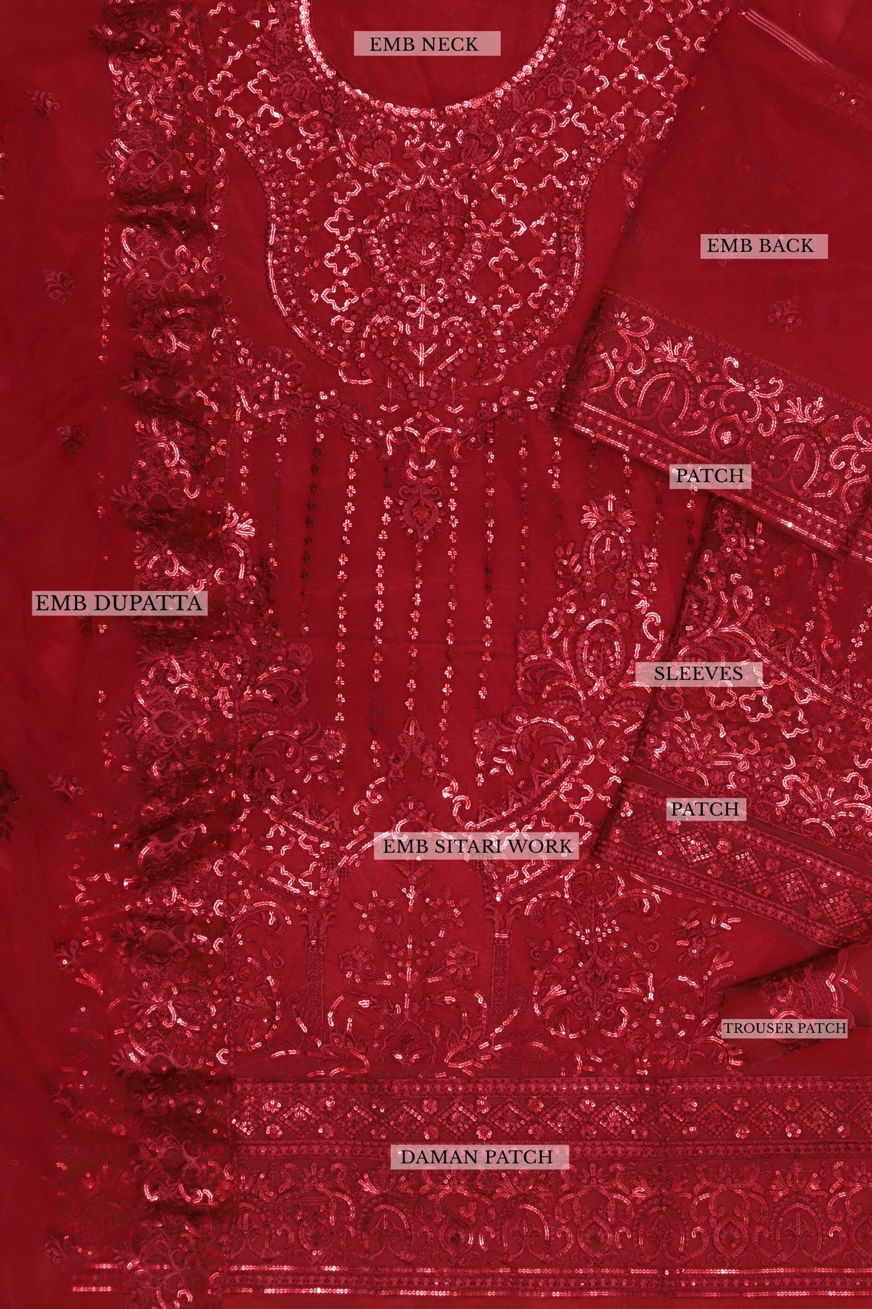 - Embroidered sequin cutwork net dupatta (ready to wear)
